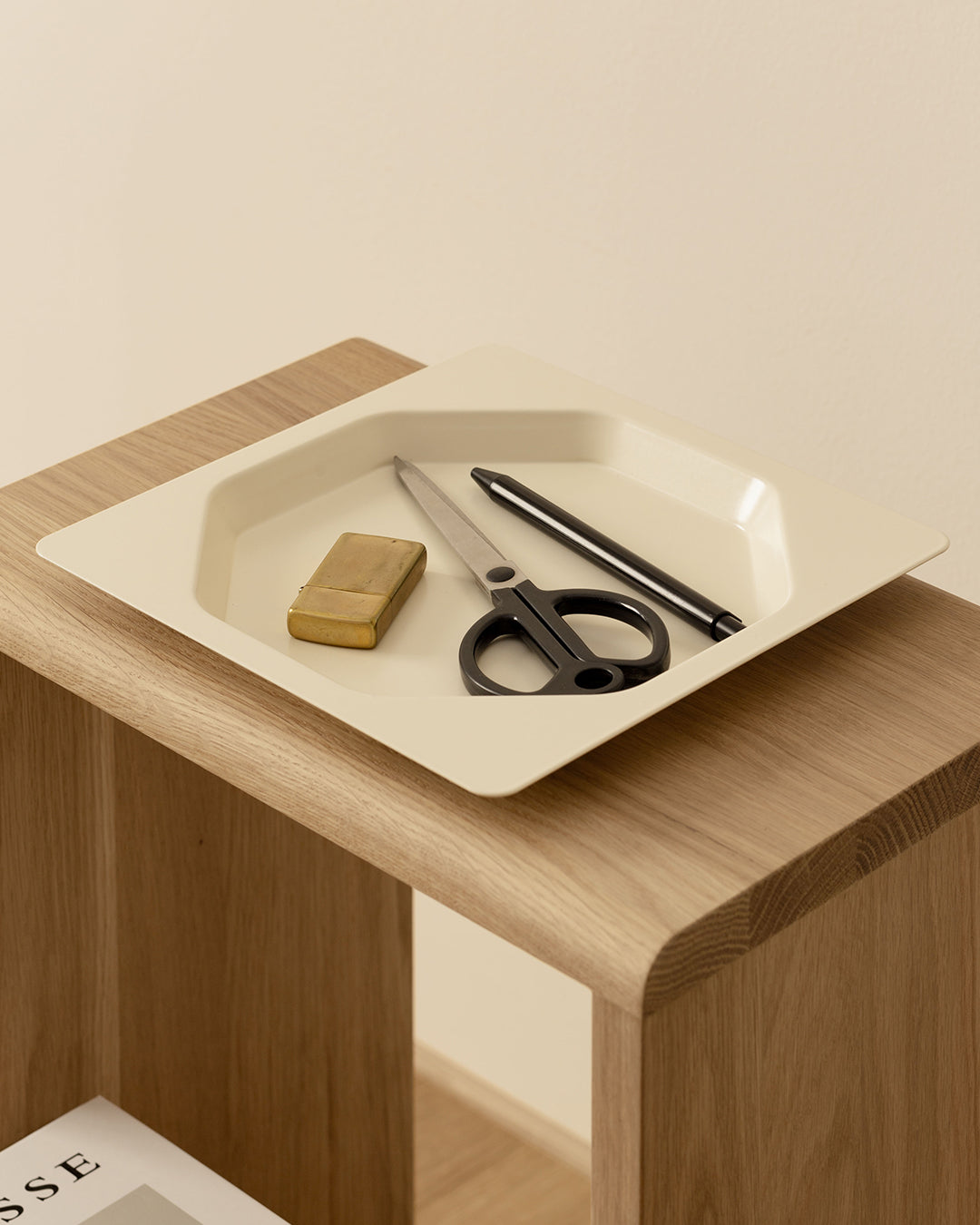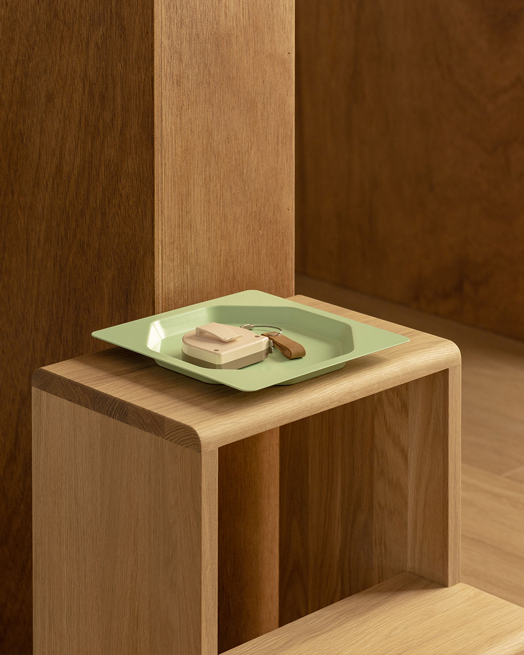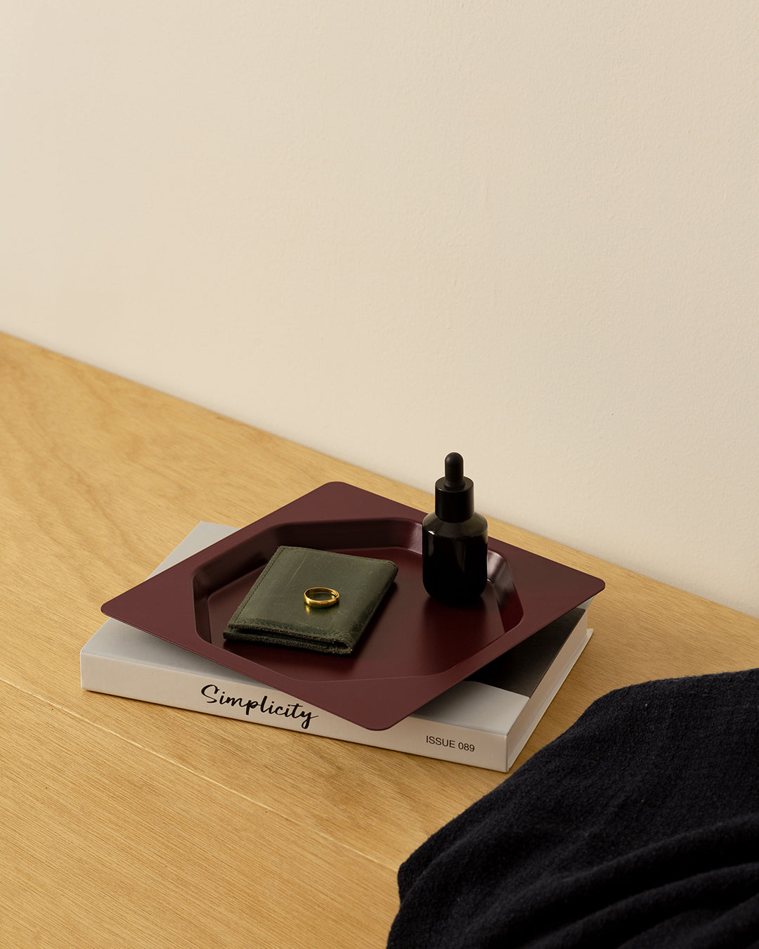托盤提供三種尺寸與三種顏色,可單獨使用,也能由小至大層層堆疊,依照不同需求自由組合。它能輕鬆放置於書桌、廚房或床邊,讓零散物件有序安放,同時也替生活場景增添一份隨性又俐落的設計感。