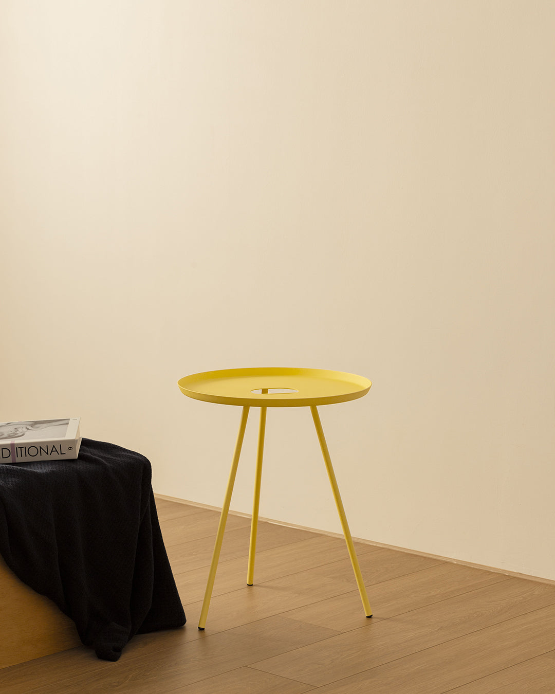 桌體以霧面粉體塗裝鋼材製成,三腳支撐結構輕盈穩固,兼具耐用與移動的靈活性。無論是居家、工作還是休閒場域,Rove Table 都能輕鬆融入,展現極簡而多變的使用方式。